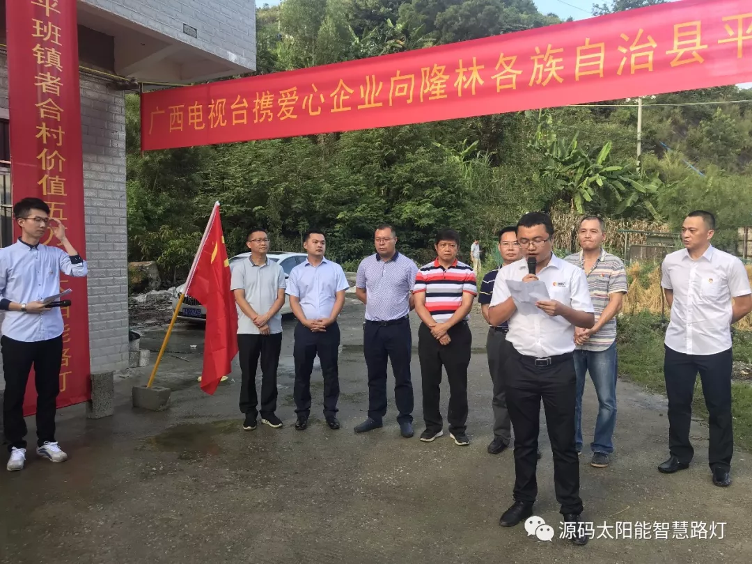 8月31日下午,隆林平班鎮者合村路燈捐贈儀式如期舉行,儀式現場,源碼太陽能路燈劉總及源碼廣西區域經銷商蔡總向者合村無償捐贈太陽能路燈。