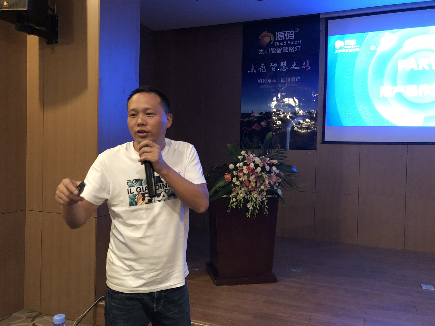 會議上,源碼副總項佰川首先對行業的現狀進行闡述,他表明行業“存量大、環境亂”,要在挑戰中把握機遇,在逆境中獲得新生。緊接著項總從源碼的品牌、渠道、產品、服務等講述源碼在行業內的優勢。隨后項總又對源碼未來作出了發展規劃,并表示未來源碼將繼續堅持做品牌,將源碼打造成“太陽能路燈先鋒品牌”。項總精彩的發言讓大家聽的心潮澎湃,干勁十足。