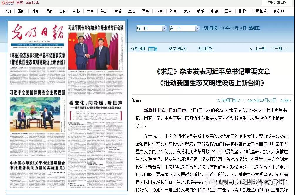 《求是》雜志近期發表了習近平總書記的重要文章《推動我國生態文明建設邁上新臺階》。文章指出,要自覺把經濟社會發展同生態文明建設統籌起來,加大力度推進生態文明建設、解決生態環境問題,堅決打好污染防治攻堅戰,推動我國生態文明建設邁上新臺階。要積極回應人民群眾所想、所盼、所急,大力推進生態文明建設,不斷滿足人民日益增長的優美生態環境需要。