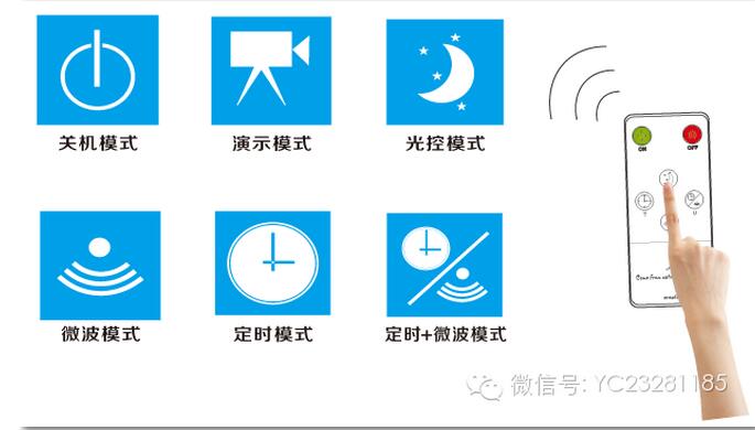 相對(duì)于同類產(chǎn)品只有晚上整夜亮燈一種模式,源創(chuàng)月光燈嵌入了智能控制和智能感應(yīng)模塊,設(shè)計(jì)有6種人性化工作模式,且配有遙控器。